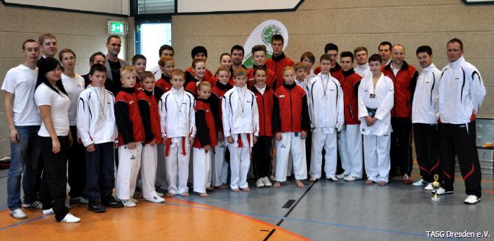 Eines der letzten wichtigen Turniere in diesem Jahr fand am 10.11.2012 in Wilsdruff statt - der Deutschlandpokal der Jugend. Jugendmannschaften aus dem gesamten Bundesgebiet hatten die Möglichkeit, sich sowohl im Technikbereich als auch im Vollkontakt zu messen. Aus unserem Verein waren gleich 7 Sportler am Start und starteten für den sächsichen Landesleistungskader. Alle 7 konnten die in sie gesetzten Erwartungen voll erfüllen und leisteten so ihren Beitrag zu einem erfolgreichen Abschneiden.