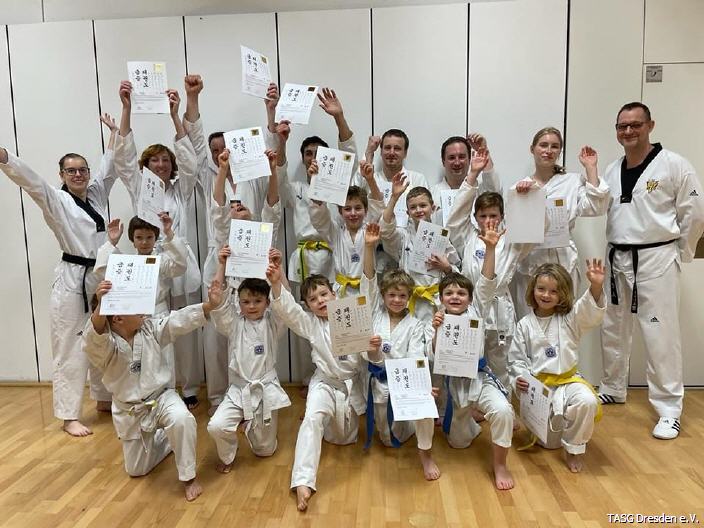 Strahlende Augen, erleichterte Gesichter, stolze Prüfer (Randolf Baldauf & Ulrike Rattke). Alle haben ihre Gürtelprüfung mit Bravour bestanden und haben sich ein schönes vorweihnachtliches Geschenk gemacht. Ihr könnt zu Recht stolz auf euch sein!