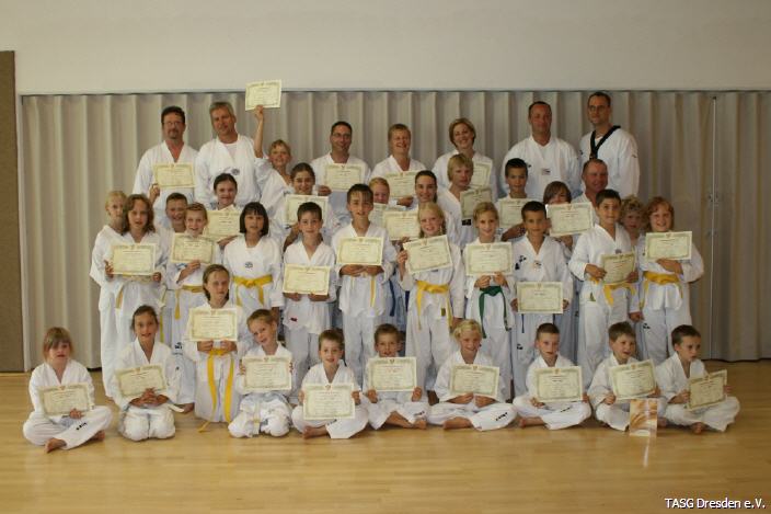 Nun ist es geschafft - die Taekwondo Prüfung in diesem Sommer in Dresden. Die Anstrengungen in den letzten Wochen der Vorbereitung haben sich gelohnt. insgesamt konnten sich am