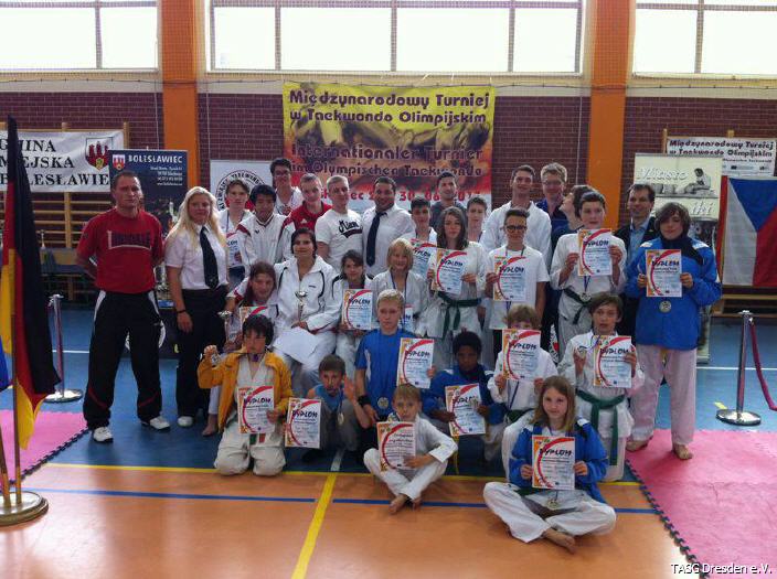 Ein wirklich tolles und erfolgreiches Turnier für uns Sachsen. 23 Sportler der Taekwondo Union Sachsen e.V. unter der Leitung unseres Landestrainers Manuel Meier haben es geschafft: 1.Platz der Mannschaftswertung beim Turnier in Boleslawiec! 12x Gold, 8x Silber und 3x Bronze....einfach genial! Und beim heutigen Teamkampf mit 9 Begegnungen konnte das Team Sachsen ebenso mit 7:2 gegen das Team Polen gewinnen.