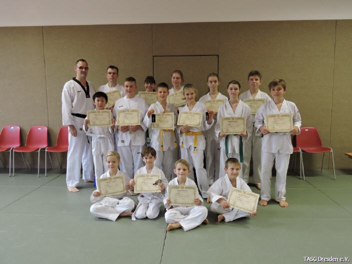 Kurz vor den Herbstferien stand noch eine Taekwondoprüfung auf dem Programm. Insgesamt 3 Stunden haben sich die Sportler dem Prüfer gestellt und gezeigt, dass sie zu Recht zur Prüfung zugelassen wurden. Alle konnten durchweg tolle Leistungen zeigen und ihr Prüfungsziel erreichen.